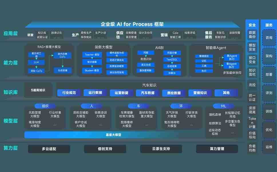 端到端的一站式AI工作空间深度融合了从企业战略规划到日常经营的全流程业务板块,,,定向解决车企内部领域多、、、部门多、、链条长、、、场景碎片化等难题,,,支持车企快速构建以AI为核心的生产力写作体系,,实现任务执行与AI能力的无缝集成与交互
